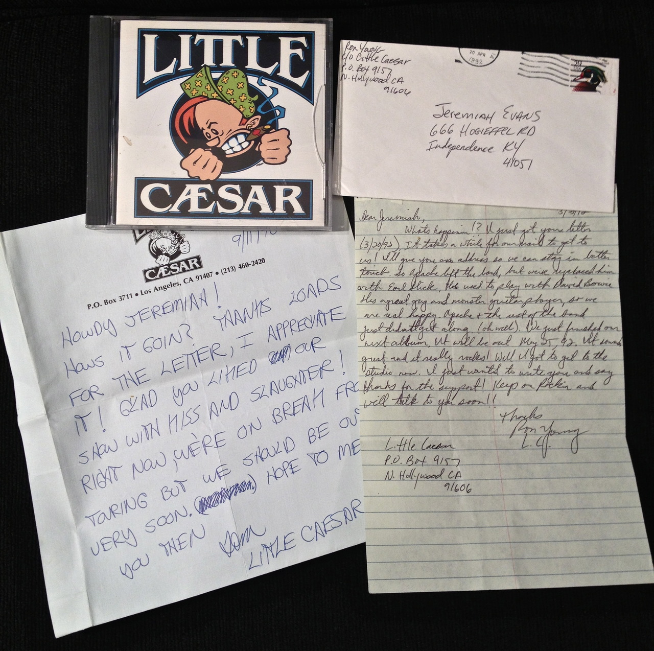 A couple weeks ago a fan shared a post on Facebook with some photos about mail he got years ago from some of his favorite bands. One of those bands was one of my clients, Little Caesar. He wrote this about Little Caesar: