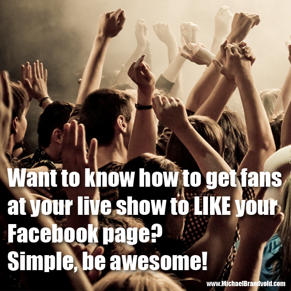 Want to know how to get fans at your live show to LIKE your Facebook page? Be Awesome!