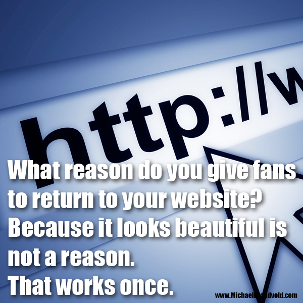 What reason do you give fans to return to your website? Because it looks beautiful is not a reason. That works once.